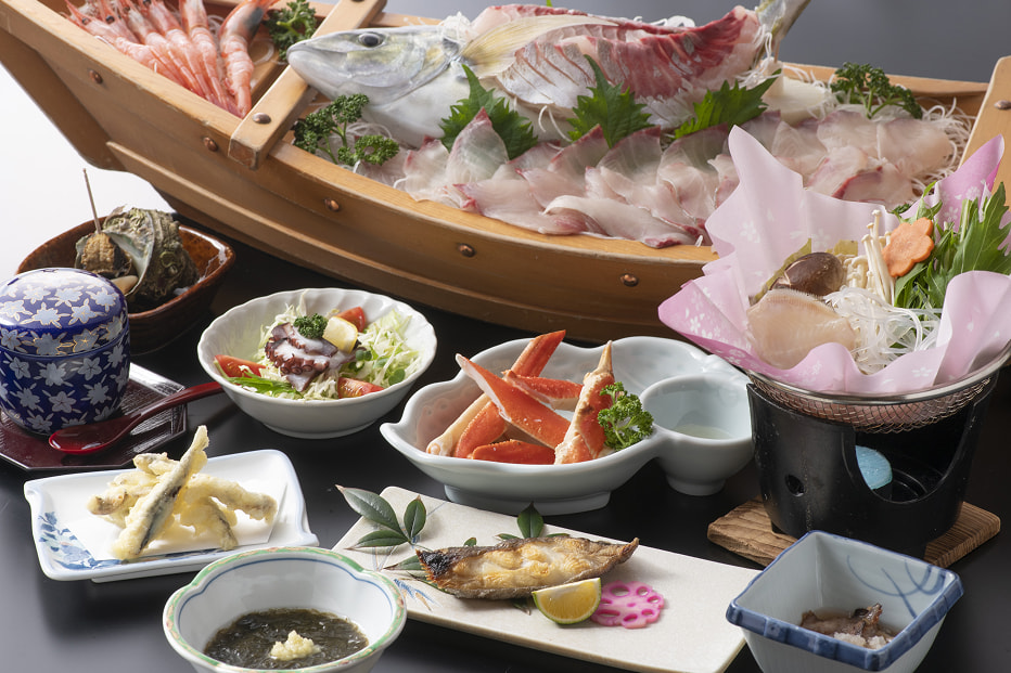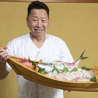 定置網漁で館主自らが獲ってきた新鮮な魚を、館主自ら船盛にしていきます。